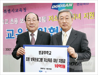 보육료 지원을 위한 <교육지원 협약식>을 가졌다. 연강재단은 2007년 3월부터 2010년 2월까지 매년 3억 원 이상,